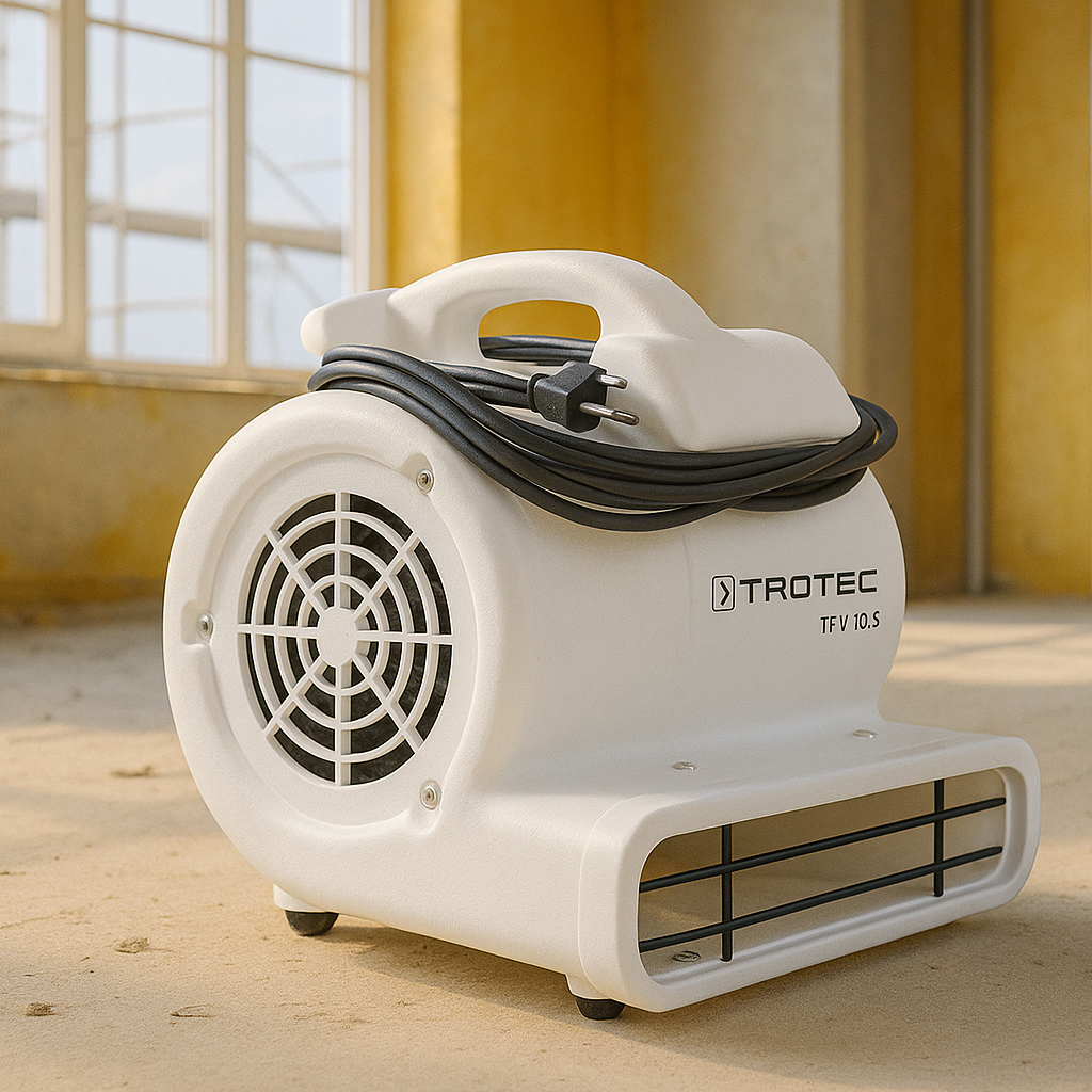 Die Ventilatoren sind die ideale Lösung für eine leistungsstarke Luftzirkulation und effiziente Belüftung deiner Baustelle während der Trocknung.